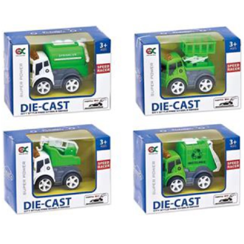 A kocsik közt találunk emelőkosaras változatot, tartályos autót, darus teherkocsit és még kukáskocsit is.