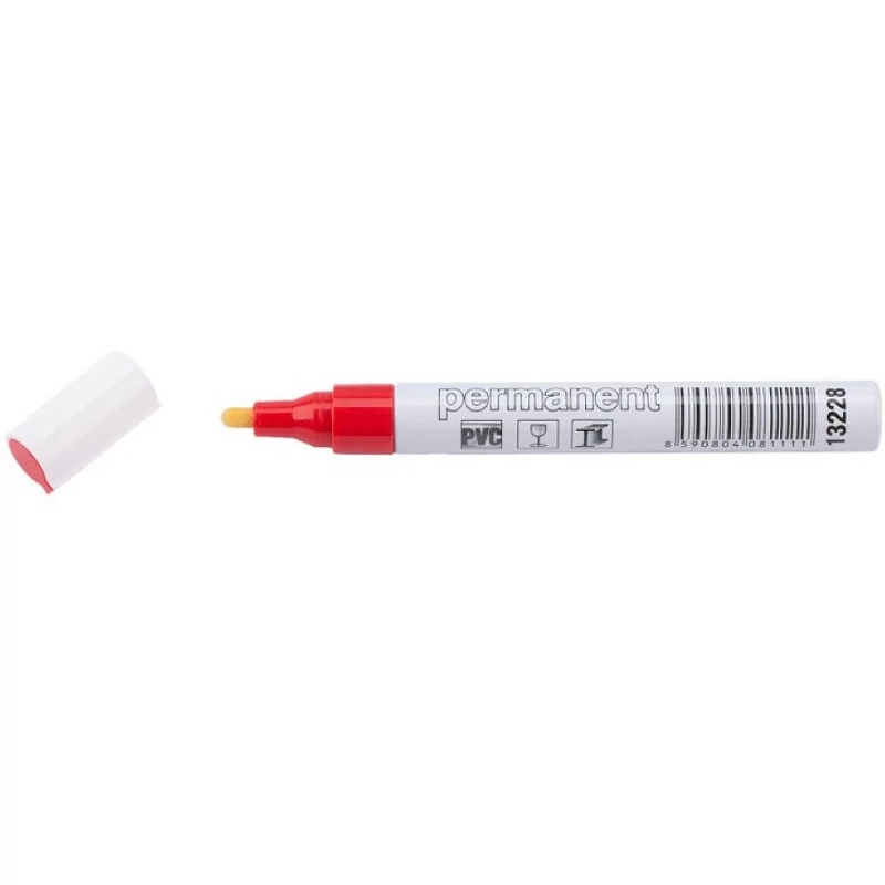Speciális jelölőfesték alumínium tokban - piros, vasszerkezetek, üveg, műanyagok, fekete stretchfóliák és sötét felületek leírására, max. 80°C.