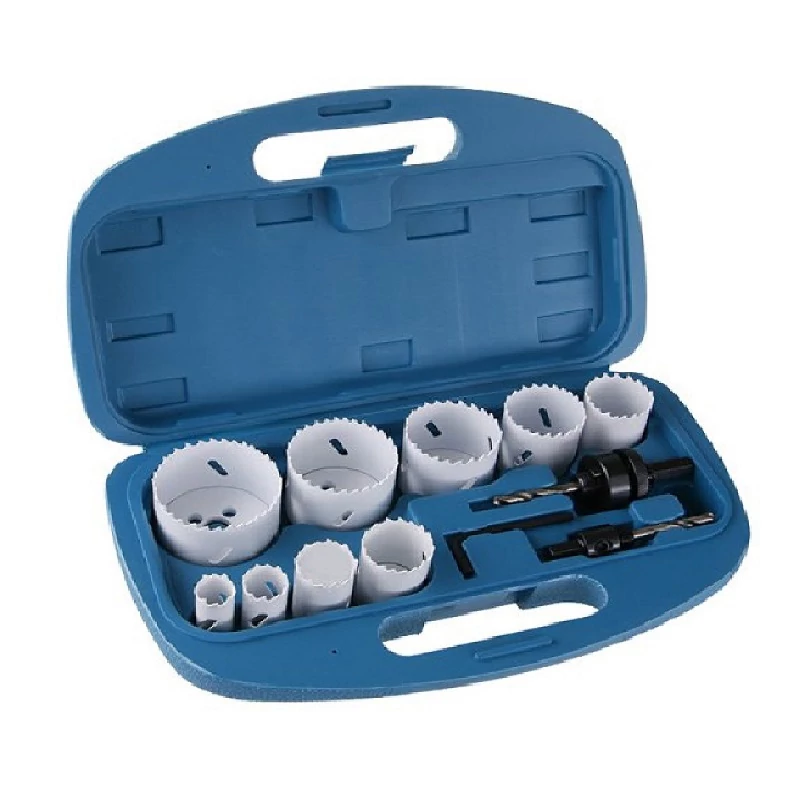 HSS BiM drill bit set diameters: 19, 22, 29, 35, 38, 44, 51, 57, 64 mm for drilling - rounding circular holes in steel, non-ferrous metals, plasterboard, wood, plastics, etc. spare driver 24410, 24411