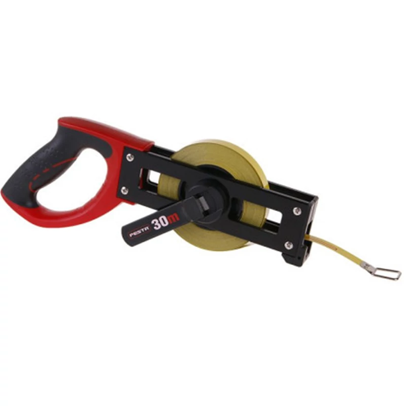 Kiváló minőségű acélszalag, edzett mérőszalag szemmel, nyitott kivitel – fém vezető ergonomikus, ABS műanyagból készült markolattal. EEC tanúsítvánnyal rendelkezik, hitelesítésre alkalmas, kihajtható felcsévélő karral.