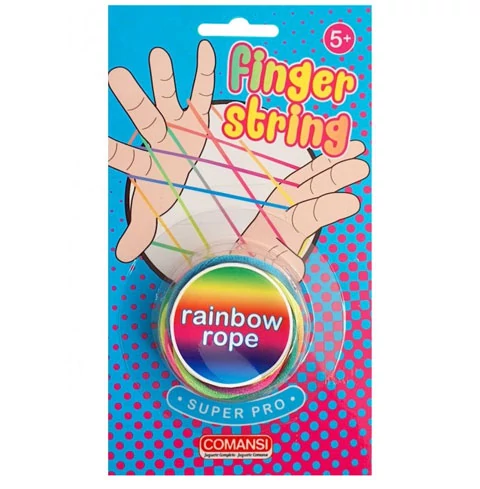 A Comansi Finger String játéka egy jól ismert, ám nagyon régi játékon alapszik, amit két ügyes játékos játszhatja. A játék elején az egyik játékos a szabályok szerint a két kezének ujjai közé fűzi a szivárványszínű gumimadzagot, és széthúzza a kezeit annyira, hogy a szálak kellőképp megfeszüljenek. Ezután a másik játék a megfelelő ujjait és a kellő mozdulatokat alkalmazva átveszi a fonalat egy új formát létrehozva. Ez a játék remekül fejleszti a gyerekek ügyességét és a színes gumimadzag pedig egészen biztos elnyeri a tetszésüket.
