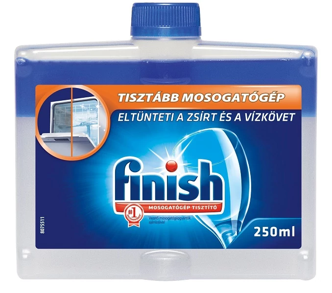 A Finish Mosogatógép tisztító zsíroldó hatása mellett kiválóan semlegesíti a szagokat, és eltávolítja a lerakódásokat, így segít karbantartani a mosogatógépet. Hatékonyan és biztonságosan távolítja el a mosogatógép belsejében lerakódott ásványi anyagokat, és a vízkövet. Hatására a mosogatógép belsejében lerakódott ásványi anyagok biztonságosan és hatékonyan lebomlanak, még a nehezen elérhető helyeken, mint például a fűtőelemen és a permetezőkarokon is. Tisztítja a gép rejtett alkatrészeit is. 250 ml-es kiszerelésben kapható. Vezető mosogatógépgyártók ajánlásával.