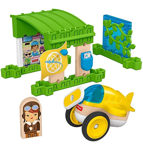 Izgalmas új lehetőségeket nyújt a játékban ez a Fisher-Price Wonder Makers minőségi játékszett, melynek fa és műanyag elemei ügyesen kombinálhatók a játék során. A kis kezek is biztonságosan használhatják majd ezt a szuper játékszettet, mely önmagában is jól használható de más Fisher-Price Wonder Makers szettel kombinálható is. A hangár mellett repülőgép járművet is tartalmaz a készlet pilótával, így a magasba emelkedhetnek a gyerekek a kalandokért!