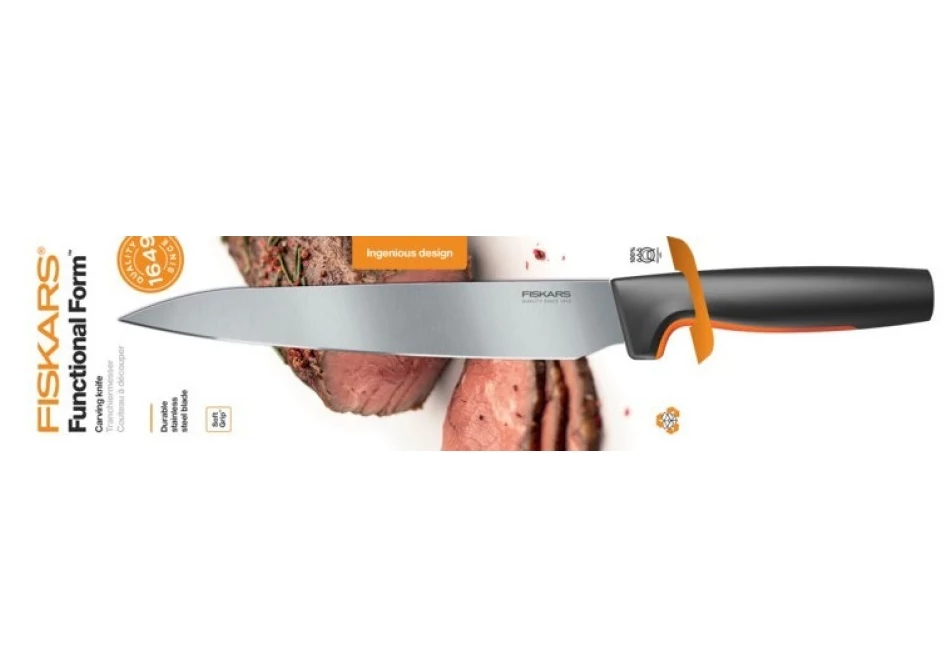Hús szeletelésére alkalmas hosszú kés, hegyes végű pengével.Tartós japán rozsdamentes acél penge.Biztonságos ergonomikus markolat, mosogatógépben mosható
