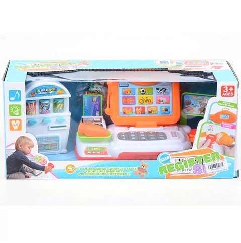 Fiús pénztárgép italautomatával, fénnyel és hanggal