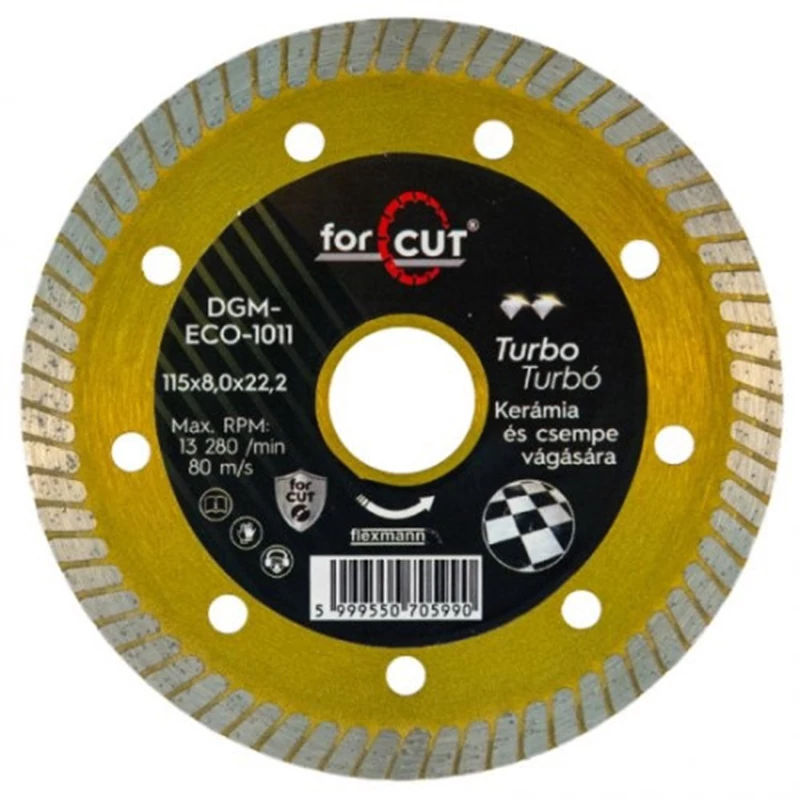 Zárt gyémántbevonat, nútozott él „turbó” Tiszta vágási él; Nagyobb vágásmélység; Általános építőipari anyagok vegyes vágására)