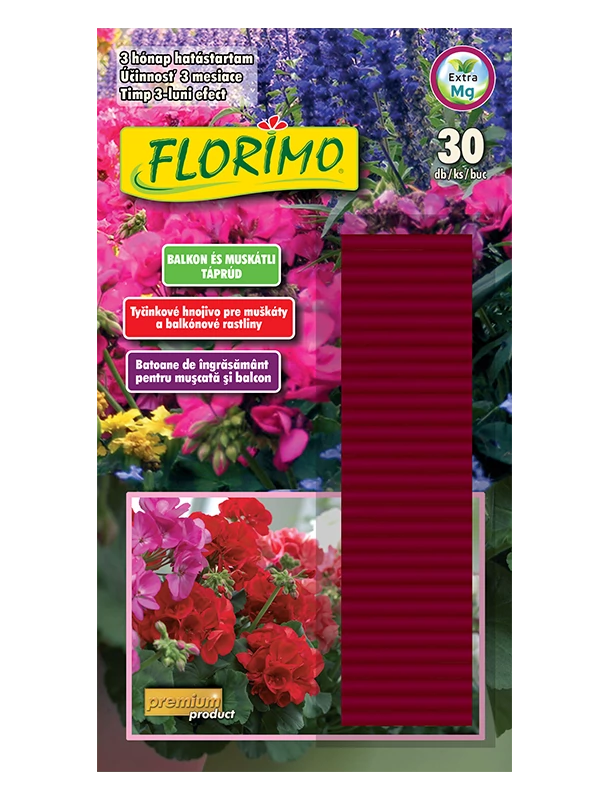 Balkonnövények, muskátlik fajtái, egynyári virágok lassú, hosszú időn át tartó tápanyag-utánpótlására 12 héten át.