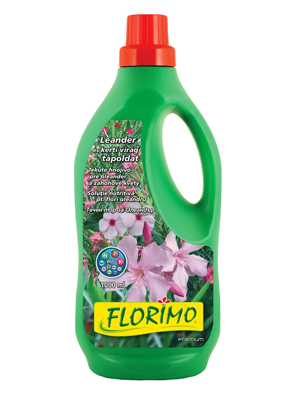 FLORIMO® Leander tápoldat Felhasználható: Leander és virágukkal díszítő kerti virágok tápanyag utánpótlására, az egészséges fejlődés és a pompás virágzás elősegítése céljából. N: 5,0%, P2O5: 4,0%, K2O: 6,0% + vas, + mikroelemek hozzáadásával.