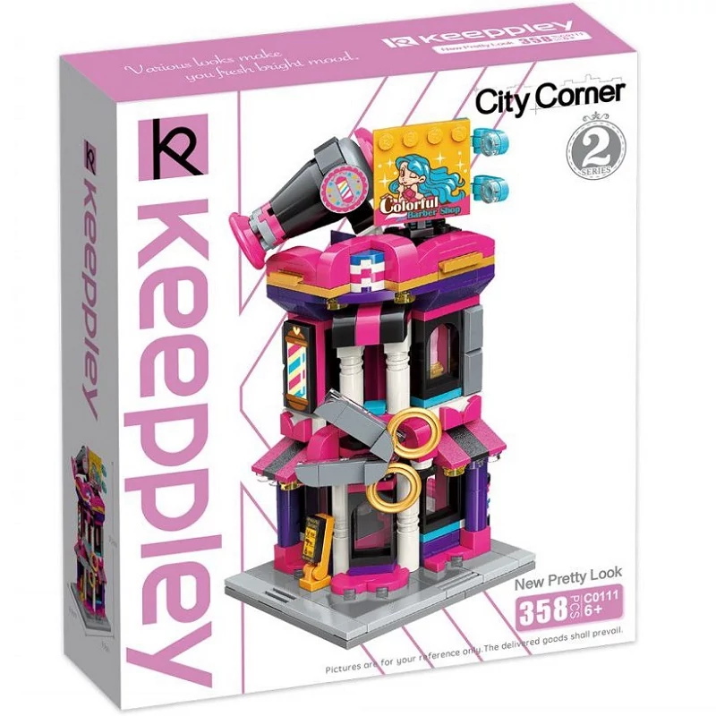 QMAN Keeppley márkájú, minőségi, Lego-kompatibilis építőjáték. Egy remek frizurához minden adott. Nem hiányozhat a Fodrász Ház a belvárosi utcából! 358 építőkocka vár Rád!
