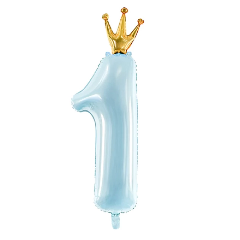 Fólia lufi, 30x90cm, 1-es szám alakú, kék, koronával, 1. születésnapra.