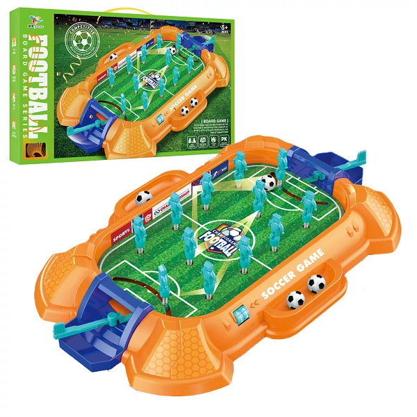 Az asztali rugósfoci egy kiváló szórakozást nyújtó játék, amelyet az egész család élvezhet. A játékterület 26x43 cm-es pályán helyezkedik el, ahol mindkét térfélen 6-6 játékos áll rugókon, fix helyen.