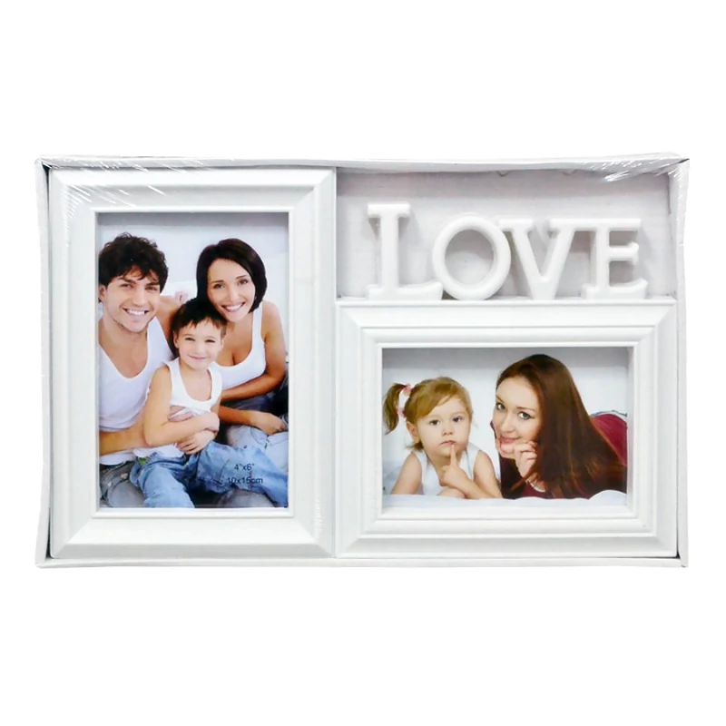 A gyönyörű élményeket legtöbbször megörökíti az ember fénykép formájában. Ehhez tökéletes választás lehet ez a Fotókeret 2 képes Love felirattal. Egy álló és egy fekvő kép helyezhető bele. Megfelelő lehet ajándékozáshoz szeretteinknek, vagy saját célú dekorálásként is.