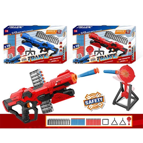 A Frantic L bevetési puska különleges tárral rendelkezik amelynek köszönhetően egymás után adhatod le a lövési sorozatot az összesen 16db puha szivacs töltény segítségével. Gyermeked a puska használatával biztonságosan veheti fel a harcot az ellenséges csapatok ellen. A szettben egy céltábla is megtalálható amely segítséget nyújt a pontos célzás elsajátításában és a gyakorlásban egyaránt. A szivacslövő fegyver kétféle színben érhető el, amelyek hozzájárulnak a két csapat megkülönböztetéséhez.