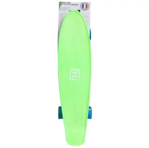 Ez a zöld színű műanyag gördeszka vagány áramvonalas kialakítás kapott, és a végét ívesen fel is hajtották, hogy a legszuperebb trükköket is lehessen vele gyakorolni. A strapabíró, kiváló minőségű műanyag deszka alá csapágyazott kerekek kerültek, hogy a lehető legkisebb gördülési ellenállás nehezítse a dolgodat.