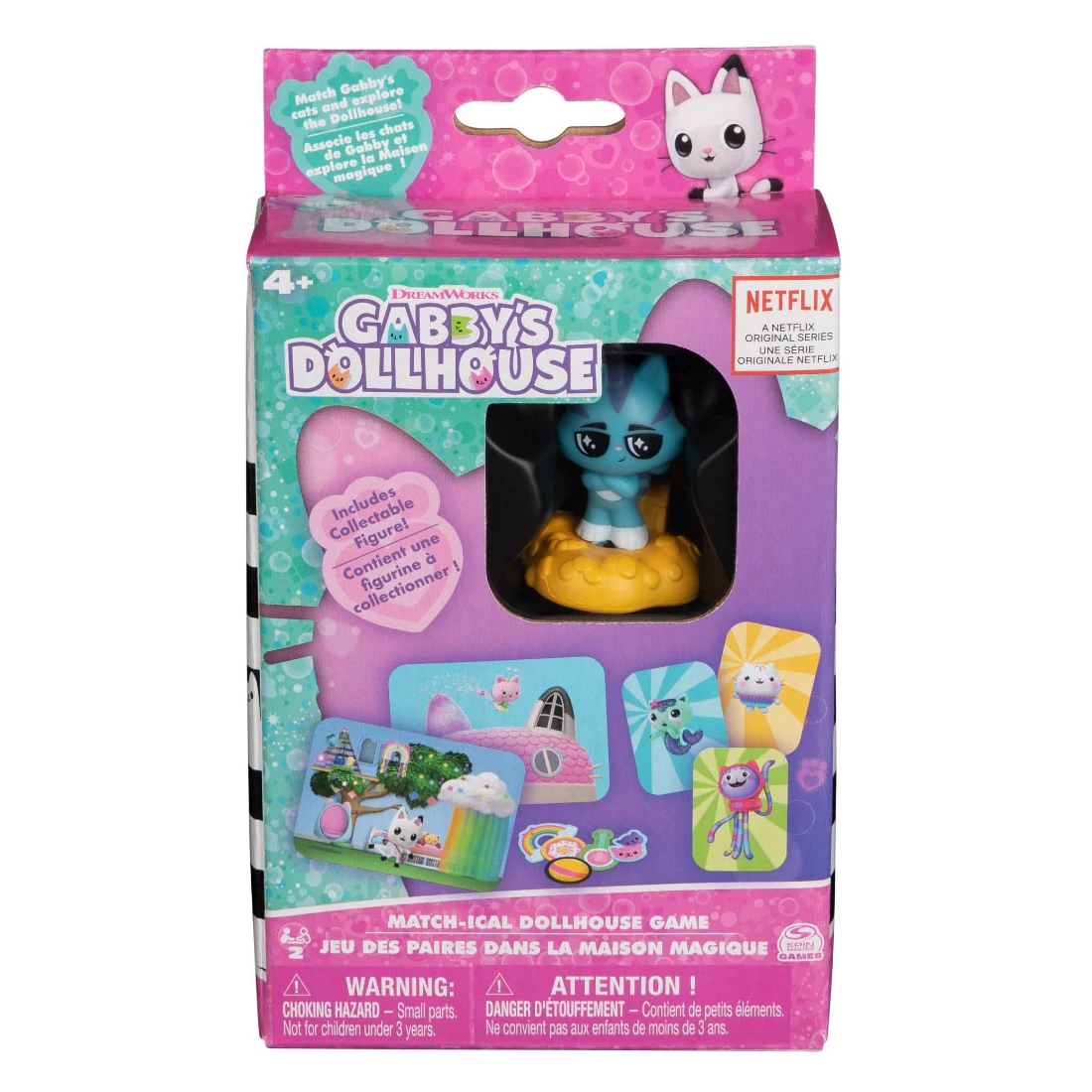 A Gabby Babaháza: Match-ical társasjáték a Spin Master-től egy varázslatos párosító játék, ahol a gyerekek Gabby és állatos barátainak világában gyakorolhatják a megfelelő tárgyak és karakterek összepárosítását. Ez a játék a Netflix népszerű sorozata, a Gabby Babaháza alapján készült, és tartalmaz egy gyűjthető figurát, amely még izgalmasabbá teszi a gyűjtögetést és a játékot. A cél, hogy a gyerekek megfelelően párosítsák össze a kártyákat, fejlesztve ezzel a memóriájukat és a megfigyelőképességüket, miközben élvezik a kedves és színes karakterekkel teli játékot.
