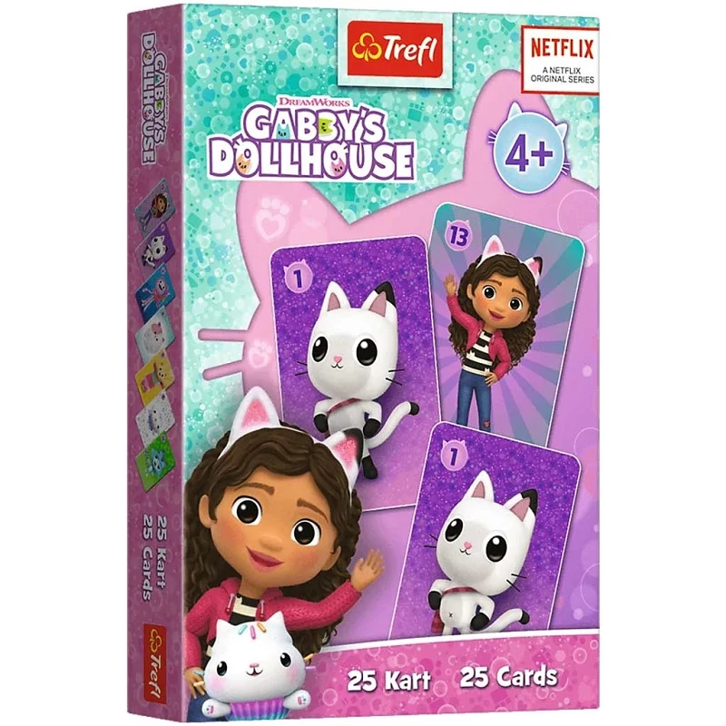 Ismerkedjetek meg Gabi és imádnivaló macskájával, Pandy-val a "Gabi Babaháza fekete péter kártyajáték" segítségével, amely a Trefl által készített játék. A Netflix népszerű sorozatának szereplői most egy izgalmas kártyajáték formájában térnek vissza, hogy a gyerekekkel együtt keressék a párjukat a színes kártyák között, miközben próbálnak megszabadulni a "fekete péter" lapjától. Ez a játék remek módszer a memória és a stratégiai gondolkodás fejlesztésére, miközben a gyerekek a kedvenc karaktereikkel tölthetnek időt. A játék 4 éves kortól ajánlott, és a csodás grafika, valamint a kedves figurák garantálják, hogy minden kis játékos örömmel vegye kézbe a lapokat.