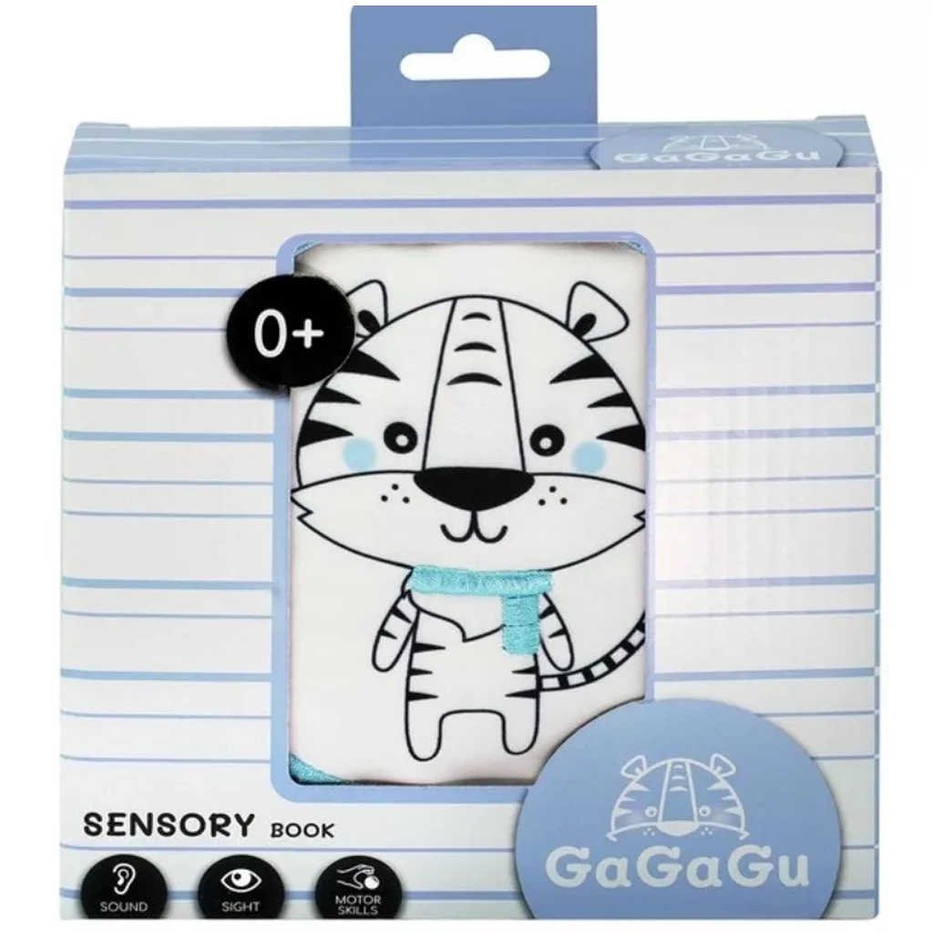 A GaGaGu fejlesztő puha könyv tigris mintával egy aranyos és hasznos első könyv a babák számára, amely játékosan támogatja az érzékszervi fejlődést. Ez a puha, textilből készült babakönyv tökéletes választás a legkisebbeknek, hiszen segíti a látás, tapintás és motoros készségek fejlődését, miközben játékos élményt nyújt.