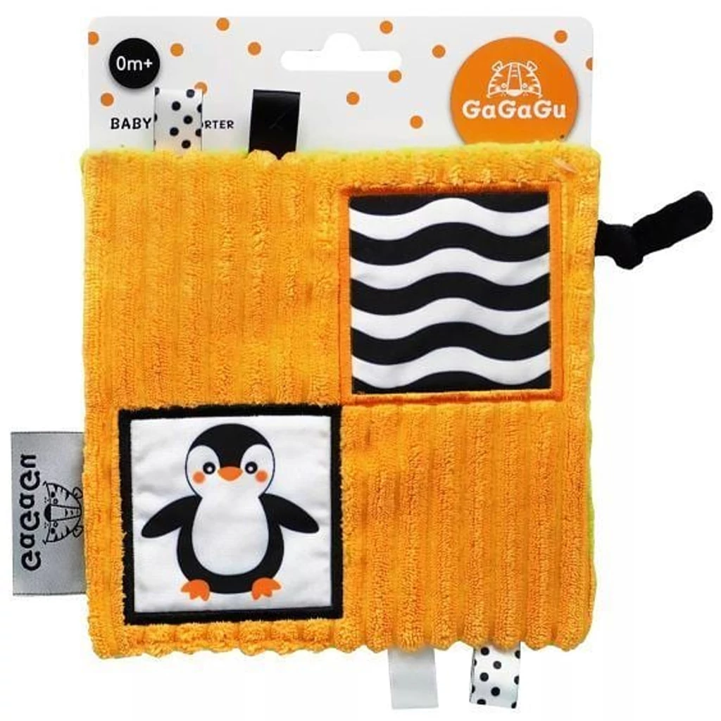 A GaGaGu kétoldalú szenzoros rongyi pingvin és mosómedve mintával tökéletes első játék a kisbabád számára! Ez a pihe-puha textiljáték nemcsak megnyugtató ölelgetnivaló, hanem segíti a kicsik érzékszervi fejlődését is. A különböző textúrák, kontrasztos minták és címkék játékra ösztönzik a babát, miközben fejlesztik tapintási, látási és finommotoros készségeit.