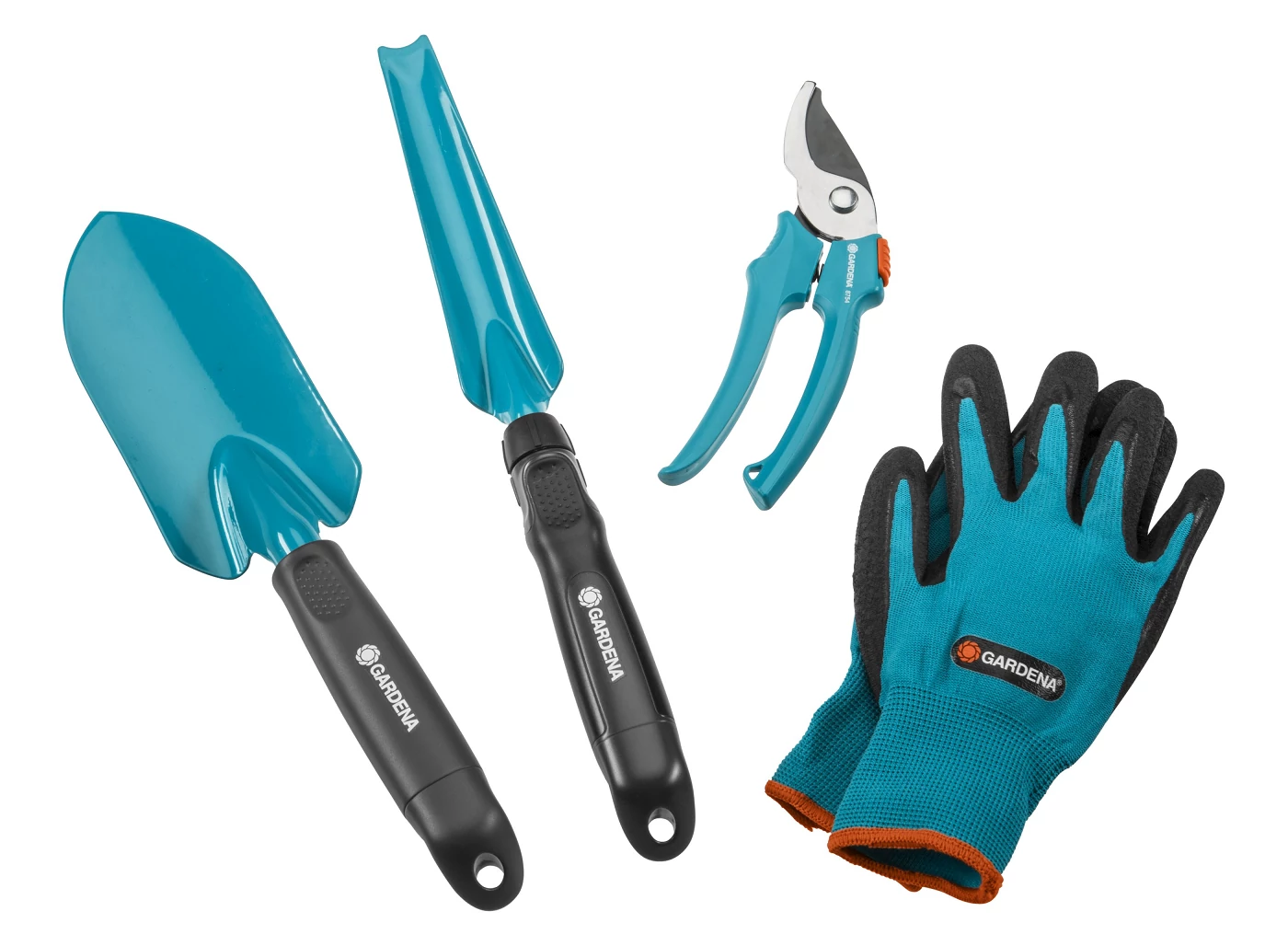A készlet tartalma: viráglapát, gyomláló, metszőolló és egy pár kesztyű