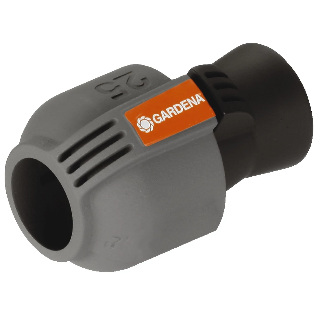 A GARDENA Sprinklersystem részét képező GARDENA 25 mm x 3/4" külső menetes kötőelemmel GARDENA csatlakozódobozhoz (cikkszám: 2722-20), vízkonnektorhoz (cikkszám: 8250-20), központi szűrőhöz (cikkszám: 1510-20) vagy S 80/300 süllyesztett esőztetőhöz (cikkszám: 1566-29) csatlakoztatható a csővezeték. A kötőelemmel az öntözőrendszer közvetlenül is csatlakoztatható a házi vízvezetékhez. A szabadalmaztatott "Klikk és Kész" gyorscsatlakozási technológiának köszönhetően az össze- és szétszerelés egyszerűen, szerszám nélkül történik - csupán a csavaros csatlakozást kell 140°-kal elforgatni. A kötőelem a biztonságos, szivárgásmentes működés érdekében öntömítő menetcsatlakozással rendelkezik.