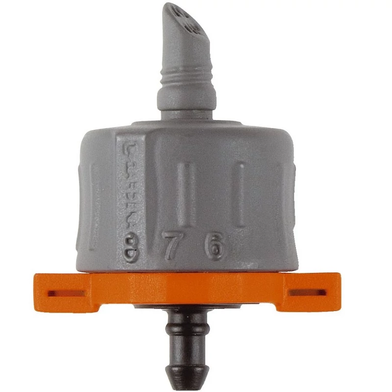 A GARDENA Micro-Drip-System részét képező szabályozható nyomáskiegyenlítős végcsepegtető ideális a különálló növények vagy eltérő vízigényű növényekből álló hosszabb sorok pontszerű öntözésére. A szükséges vízmennyiség a csepegtető mennyiségskálája segítségével állítható be, 1-8 liter/óra tartományban. A csepegtető nyomáskiegyenlítése (1-4 bar) biztosítja az egyenletes vízelosztást - függetlenül a víznyomástól. Az öntisztuló membrán- és labirintustechnológiának köszönhetően garantált a hosszú távú, megbízható működés. Különálló növények öntözéséhez a végcsepegtetőt egy elosztócső (3/16") végébe kell belecsavarni. A 13 mm-es (1/2") vezetékcső a szerelőeszköz (cikkszám: 8322-20) segítségével kilyukasztható; ebbe a lyukba kell beilleszteni a végcsepegtetőt. A csomag öt végcsepegtetőt tartalmaz.