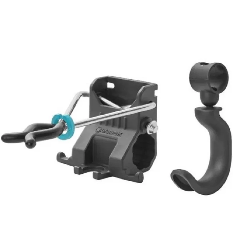 A GARDENA Pót tartó és kampó készlettel könnyedén és rugalmasan bővítheted nehéz kerti szerszámainak tárolóját. A készlet tartalmaz egy tartót és egy univerzális kampót. A tartó stabilan tartja a nehéz kerti szerszámokat, például ásókat vagy villákat, amelyek súlya akár 10 kg is lehet. A nagyobb rugalmasság érdekében a tartók a combisystem és az Original GARDENA System eszközök tárolására is használhatók. Az univerzális kampón max. 5 kg-ig tárolható sövénynyíró vagy széles markolattal rendelkező lombfújó. A zárható fali tartónak köszönhetően az alumínium rúd visszahúzható, és a szerszámtartó további tartókkal és kampókkal bővíthető, így több szerszámot tárolhatsz. A Pót tartó és kampó készlettel kombinálva a Plus szerszámtartó (cikkszám: 3509-20) hatékonyan bővíti a tárolórendszert.