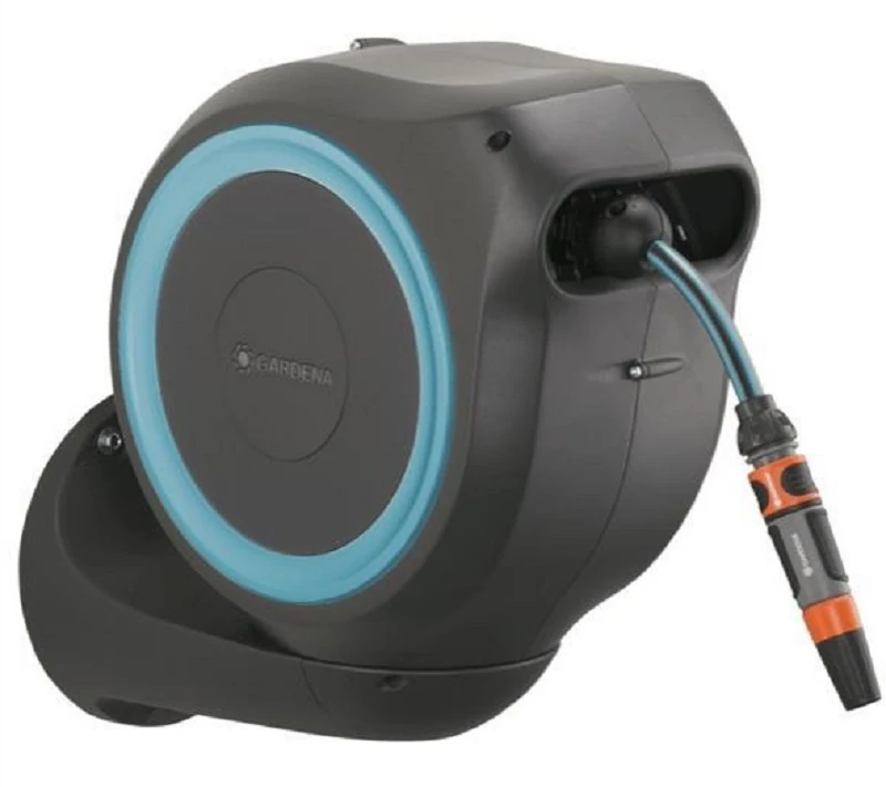A kert öntözése minden eddiginél kényelmesebb és könnyebb a RollUp S fali tömlődobozzal. Segít a kert rendben tartásában, rendezettségében és megakadályozza, hogy az ide-oda tekergő tömlőben bárki elessen. A praktikus tömlőtároló egyszerűen a ház falára van felszerelve, és egy rugalmas összekötő tömlővel csatlakoztatható a vízcsaphoz. A masszív fali konzolnak köszönhetően a tömlődoboz több mint 180°-ban elforgatható, így könnyedén elérheted a kert minden sarkát. Használatkor egyszerűen húzd ki a kerti tömlőt maximum 15 méter hosszúságúra. A kerti tömlő rövid szakaszonként, automatikusan rögzül, amint megállítod, vagyis a tömlő egyszerűen és könnyen kezelhető. Egy apró húzó mozdulat a tömlő végén és az innovatív RollControl technológiával ellátott beépített acélrugónak köszönhetően a tömlő egyszerűen feltekeredik. A RollControl megvédi a tömlődobozt és a környezetet a túl gyors feltekerés okozta kellemetlenségektől. A beépített tömlővezető megakadályozza, hogy a tömlő megcsavarodjon vagy megtörjön. Az Original GARDENA rendszerű csatlakozóelemeknek köszönhetően egyszerűen és rugalmasan csatlakoztathatsz hosszabbítót vagy más kompatibilis GARDENA elemeket a tömlőhöz. A csatlakoztatható GARDENA eszközök mindig kéznél vannak, mivel a fali konzol alatt tárolhatók, ezzel is helyet takarítva meg. A GARDENA fali tömlődoboz UV- és fagyálló, egész évben kint maradhat a ház falán. A kiváló minőségű anyagok hosszú élettartamot és használhatóságot kínálnak karbantartás nélkül. Ezenkívül a tömlődoboz biztonságos lopásgátlóval is ellátott, csak tulajdonosa tudja eltávolítani a falról. A RollUp S Fali tömlődoboz tartalmazza a fali konzolt, egy rugalmas csatlakozótömlőt, az összes szükséges Original GARDENA rendszerű csatlakozóelemet, valamint egy locsolót kétfajta szórófejjel. Ehhez a kiváló minőségű termékhez a GARDENA 5 év garanciát nyújt. Öntözés, amely mindig bevetésre kész a GARDENA RollUp S fali tömlődoboz segítségével.