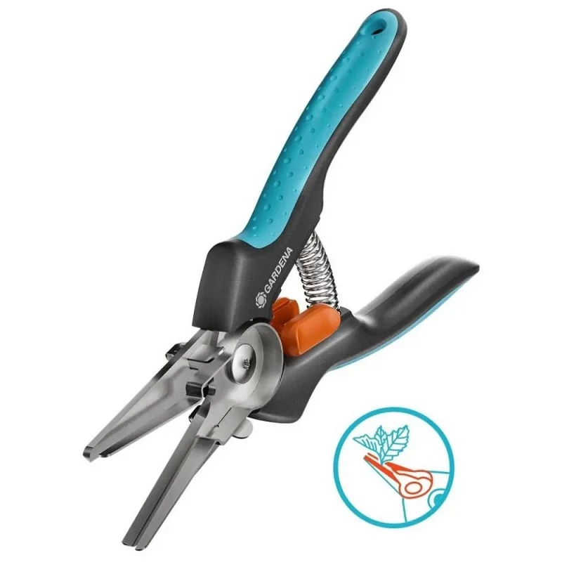 A GARDENA GripCut fogóval van felszerelve, és a beépített tartó funkciónak köszönhetően egy kézzel egyszerre vághatsz és tarthatsz. A GripCut sokoldalúsága rendkívül hasznos: Darabolj fel friss fűszernövényeket, például egy szál petrezselymet vagy metélőhagymát, és egyúttal tartsd is meg őket. Különösen a chilipaprikák betakarítását könnyíti meg, mert nem kerül csípős lé az ujjaidra. Nem fogod leejteni a termést, ráadásul az egyik kezed szabad, hogy megfogd a tálat vagy a szűrőt, ami azt jelenti, hogy többé nem kell lehajolnod, hogy a földön lévő edénybe tedd a dolgokat. Vágáskor a kiváló minőségű és tartós rozsdamentes acél vágóélek nagyon meggyőzőek. Az éles olló tisztán és pontosan vág egészen a hegyéig. Az ergonomikus, puha alkatrészekkel ellátott ErgoTec markolatoknak köszönhetően a szüretelő olló tökéletesen illik a kézbe és csúszásmentes. Az egykezes zárral a GripCut biztonságosan lezárható a tároláshoz. A vágóélek élelmiszer-biztosak, ami azt jelenti, hogy nem bocsátanak ki semmilyen ízt vagy szagot. A könnyű tisztítás érdekében egyszerűen szereld szét először a fogót, majd tedd a mosogatógépbe a szüretelő ollóval együtt.