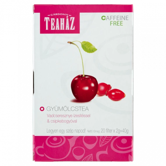 A Gárdonyi Teaház Gyümölcstea vadcseresznye ízesítéssel és csipkebogyóval egy különleges ízvilágú, finoman illatos gyümölcstea, melyet a vadcseresznye íze tesz igazán különlegessé. Ideális választás nyáron hűtve, de hidegebb időben forrón is nagyon finom.