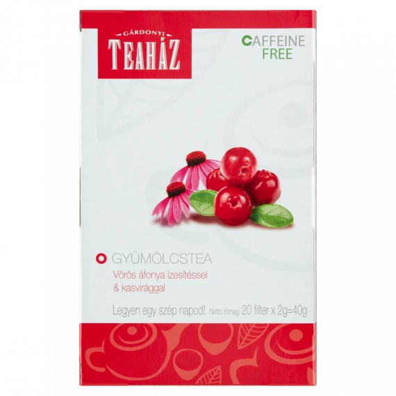 A Gárdonyi Teaház Vörösáfonya tea kasvirággal egy ízletes és egészséges koffeinmentes ital, amely frissítő és üdítő hatású. A vörös áfonya és a kasvirág gyógyhatásai együttesen hozzájárulnak az immunrendszer erősítéséhez, a gyulladás csökkentéséhez és az emésztés javításához.