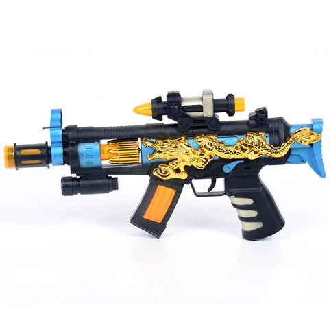 A gyerekek imádnak katonásdit és háborúsdit játszani, és ehhez leginkább egy szuper fegyverre van szükség, amire ez a géppisztoly egy remek választás. A nagyjából harminc centiméteres géppisztoly tökéletes, hiszen elképesztően vagányul néz ki köszönhetően az oldalát díszítő sárkány mintának, ráadásul fényekkel valamint hangokkal is hozzájárul a tökéletes játékélményhez. A fegyver semmilyen lövedéket nem lő ki, így a gyerekek maximális biztonságban játszhatnak vele.