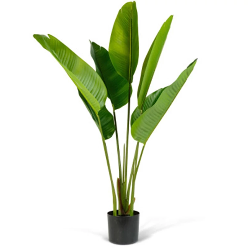 A műnövény dekoráció – banánlevél fa élethű megjelenésével természetes hatást kelt, gondozás nélkül. A zöld színű levelek formája és mérete jól utánozza az élő banánlevelet, így alkalmas otthoni, irodai vagy üzleti terek díszítésére. 1,2 méter magas, stabil kialakítású, nem igényel öntözést, fényt vagy különösebb karbantartást, egész évben változatlan megjelenést biztosít.