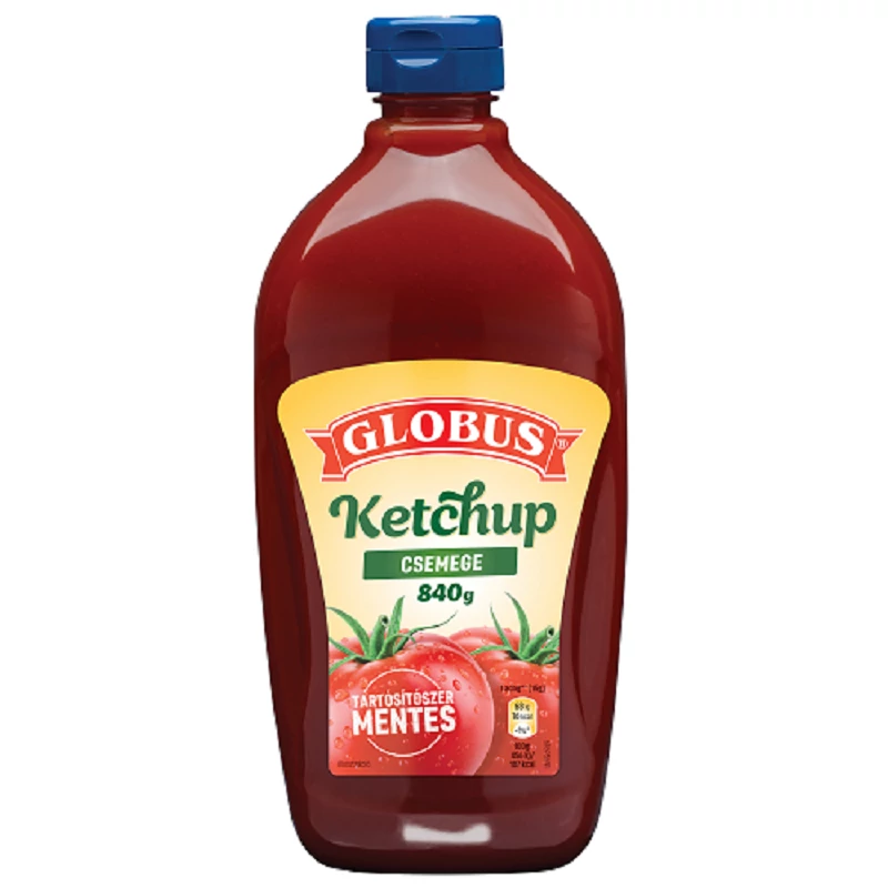 63% sűrített paradicsom; Cukor; Ecet; Víz; Módosított keményítő; Só; Fűszerek (vöröshagyma, fokhagyma, babérlevél, szegfűszeg); 100 g ketchup elkészítéséhez 151 g paradicsomot használtunk fel