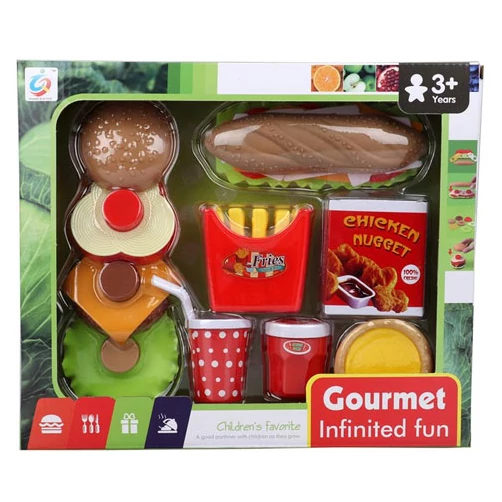 Aligha lehet elképzelni egy laktatóbb reggelit, mint egy hamburger zamatos hússal és friss zöldségekkel, finom, ropogós hasábburgonyával és egy édes fánkkal. Ebben a vagány szettben minden adott ahhoz, hogy a gyerekek a játékkonyhában egy ilyen pompás lakomát dobjanak össze. A reggeliző szett segítségével a gyerekek gyakorolhatják az ételek elkészítését, és remekül használhatják a szerepjátékok során, álljon a vendég sereg a kedvenc babákból vagy plüss állatokból vagy a legjobb barátokból.