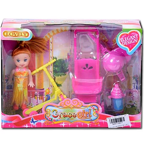 Kellemes és egyben szórakoztató utazás vár Grace babára a kislányok társaságában, hiszen a bájos baba a rolleren is utazhat, ám ha már fáradtnak látszik a gyerekeke akár babakocsiba is ültethetik őt. A csinos ruhában érkező baba kiegészítőkkel is rendelkezik a szettben, így a rollerhez használható bukósisakot adhatnak rá, vagy épp ízletes italt fogyaszthat az üvegből. A szórakoztató játékszett remek választás a kislányok számára.