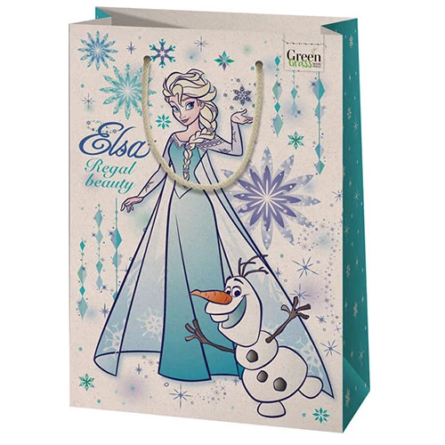 A Jégvarázs című Diseny mesefilm elképesztően népszerű a kislányok körében, így a nekik szánt ajándékhoz keresve sem találnánk jobb ajándéktasakot, mint amelyiket Elza hercegnő és Olaf díszít. Kellemes illatú, kaszált fűből készült ajándéktasakok a környezettudatos csomagolás új generációját képviselik. A fű cellulóztartalma miatt a papír előállításához nincs szükség fák kivágására A nagy méretű, álló kialakítású ajándéktáska kiváló minőségű, telített színekkel készített nyomata szép megjelenést, míg a lakkozott vastag papír és az erős zsinórfüles kialakítás tartósságot kölcsönöz neki, hogy a benne lévő ajándékok biztonságban legyenek.