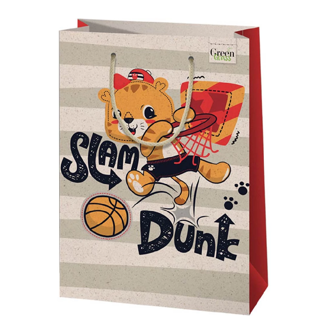 Green Grass Kosárlabdázó oroszlán mintás nagy méretű prémium ajándéktáska 26x14x33cm