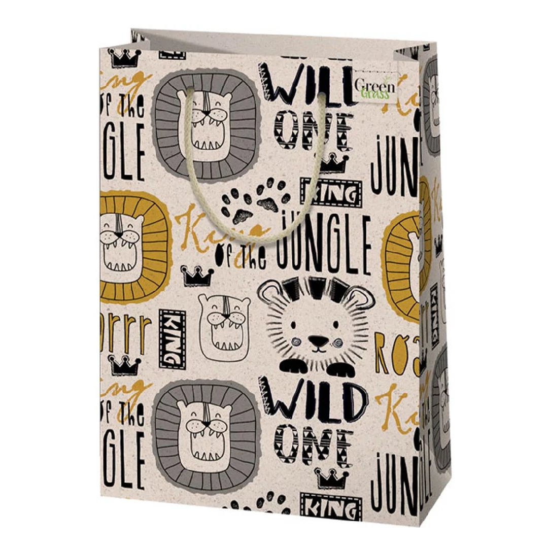Green Grass Oroszlán mintás nagy méretű prémium ajándéktáska 26x14x33cm