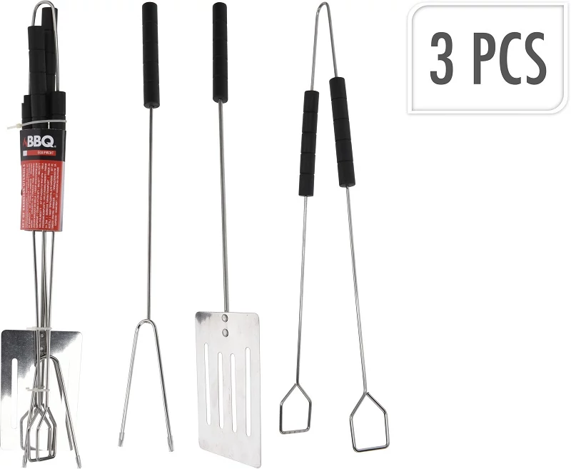 A grillezéshez vagy sütéshez szükséges három edénykészlet. Ez az alapkészlet rendkívül hasznos lesz grillezésnél. Nekik köszönhetően könnyedén megforgathatjuk majd az elkészített ételeket. A tartozékok könnyen tisztíthatók és használhatók.