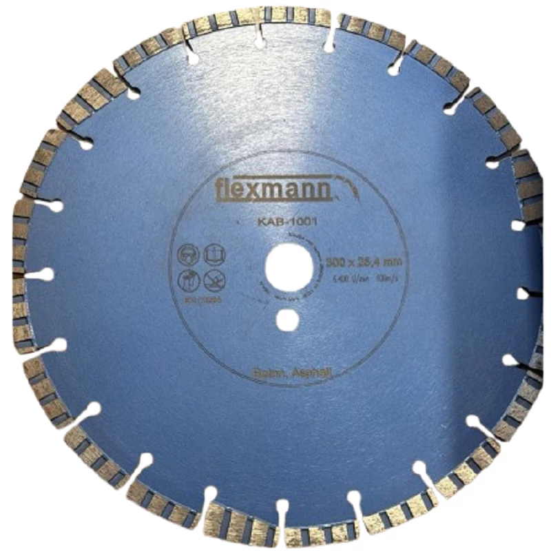 Ez a kiváló minőségű Flexmann gyémánt vágókorong ideális aszfalt vágásához. A 300 mm átmérőjű korong nagy teljesítményt és precíz vágást biztosít.