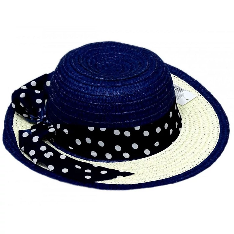 Nagyon csinos gyerek méretű nyári kalap. Díszítése a kalap színével harmonizáló dekoratív pöttyös szalag, masnival. Mérsékelten vízálló. Táskában is szállítható, anélkül hogy sérülne.