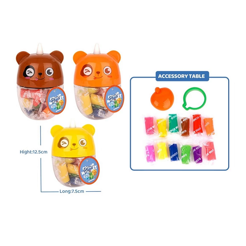 A szett tartalma: 1 db műanyag tároló, 12 csomag gyurma különböző színekben és 2 db gyurmaformáló eszköz.