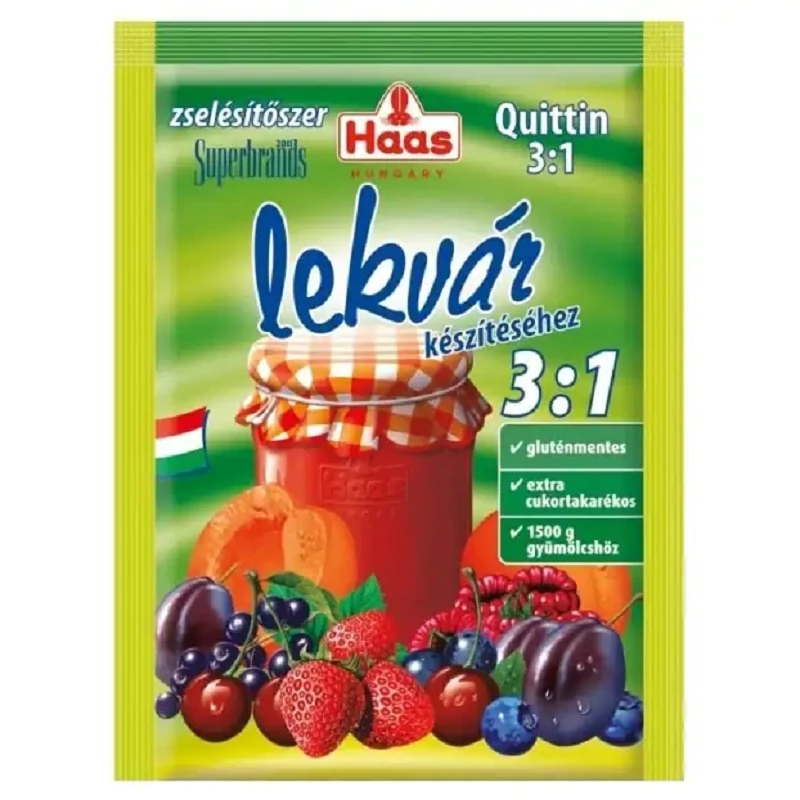 A Haas Quittin 3:1 zselésítő befőzőszerrel cukor hozzáadása nélkül is készíthető lekvár. Ebben az esetben 0,25 kg Haas Glukonont számítson 1,5 kg gyümölcshöz, és másfél tasak zselésítőszert adjon hozzá.