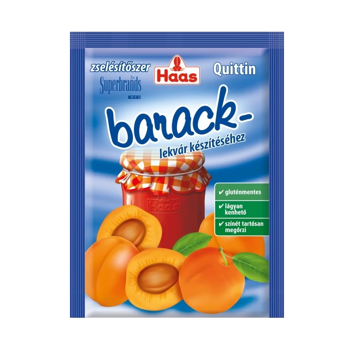 A tasak tartalma 1,25 kg gyümölcshöz + 0,5 kg cukorhoz elegendő, melyből 1,75 kg lekvár készíthető. A kifejezetten sárgabaracklekvár készítéséhez kifejlesztett Haas Quittin zselésítőszerrel az Ön lekvárja gyorsan elkészíthető, vitaminokban gazdag és lágyan kenhető marad, élénk színét pedig tartósan megőrzi.