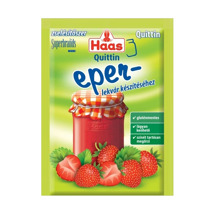 A tasak tartalma 1,25 kg gyümölcshöz + 0,50 kg cukorhoz elegendő, melyből 1,75 kg lekvár készíthető. A kifejezetten eperlekvár készítéséhez kifejlesztett Haas Quittin zselésítő befőzőszerrel az Ön lekvárja gyorsan elkészíthető, ezért kevésbé károsodik a gyümölcsök vitamintartalma, mint a hosszan tartó befőzési eljárások során. Lekvárja lágyan kenhető marad, élénk színét pedig tartósan megőrzi.
