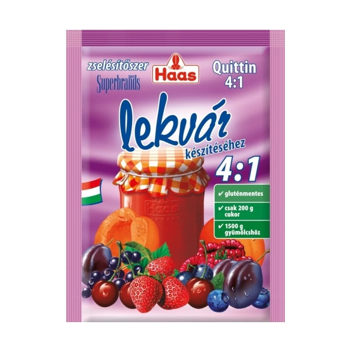 A tasak tartalma 1,5 kg gyümölcshöz + 0,20 kg cukorhoz elegendő, melyből 1,7 kg lekvár készíthető. A Haas Quittinnel az Ön lekvárja gyorsan elkészíthető és vitaminokban gazdag marad.