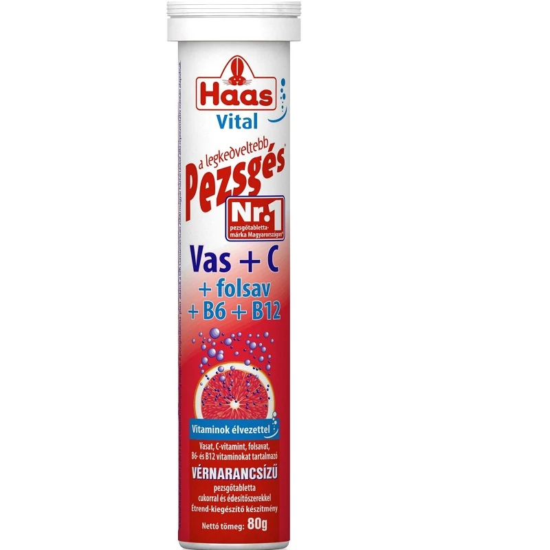 - Vasat, C-vitamint, folsavat, B6- és B12-vitaminokat tartalmazó vérnarancsízű pezsgőtabletta cukorral és édesítőszerekkel. Étrend-kiegészítő készítmény