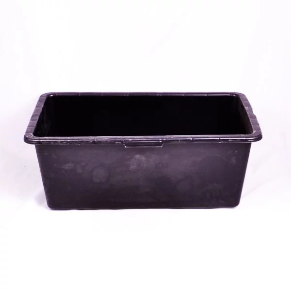 Műanyag láda habarcs keveréséhez fekete színben, csonka gúla alakú, 80 literes űrtartalommal.