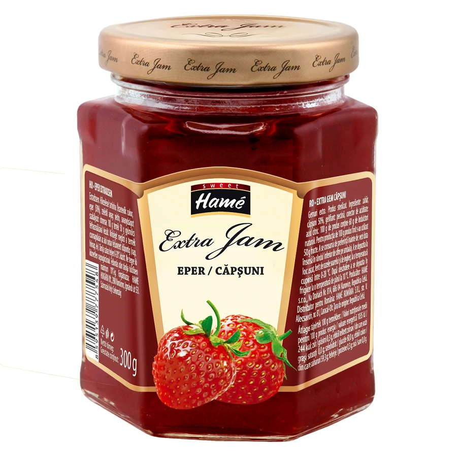 - Cukor, Eper (50%), Zselésítő anyag: pektin, Savanyúságot szabályozó: citromsav, 100 g termék 50 g gyümölcs felhasználásával készült.