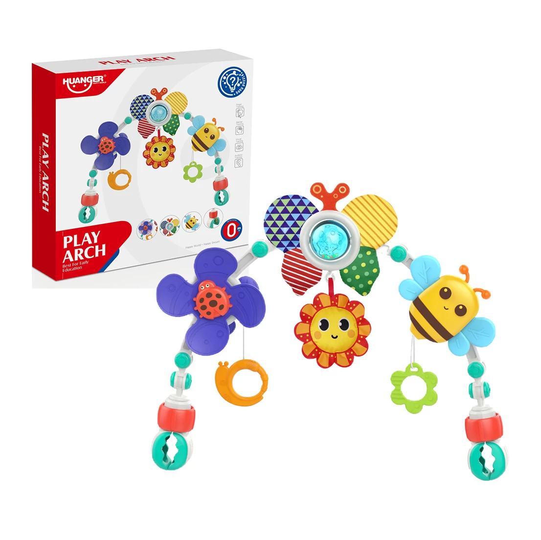 A játékhídon található vidám méhecske, napocska, pillangó és katica kiválóan stimulálja a kisbabák érzékeit és kíváncsiságát. Ezek a játékelemek élénk színekkel és különféle textúrákkal rendelkeznek, amelyek segítenek a látás és tapintás fejlődésében. Emellett a játékhídon lelógó elemek még inkább felkeltik a gyermek érdeklődését és játékra ösztönzik.